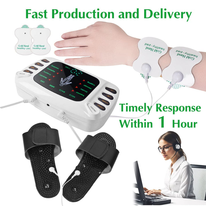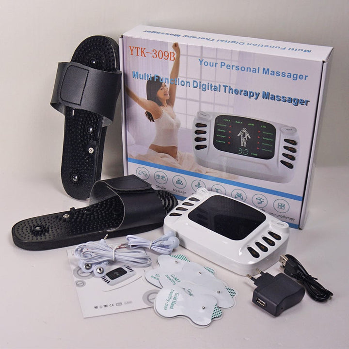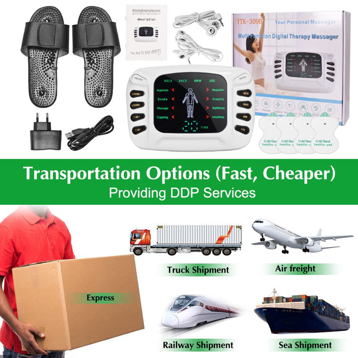 حل متكامل لتخفيف الآلام المزمنة، استرخاء العضلات، وتحسين الدورة الدموية مع لاصقات كهربائية وشباشب مساج للقدمين