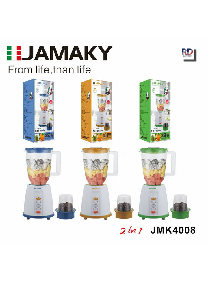 خلاط جاماكي مع مطحنة – 2×1 – سعة 2 لتر – مقاوم للكسر – بقدرة 350 واط فعلية. تصميم إيطالي عصري لتحضير العصائر والمشروبات والطحن بكل سهولة. مثالي لكل منزل عصري. اطلبه الآن من أوفر ماركت.