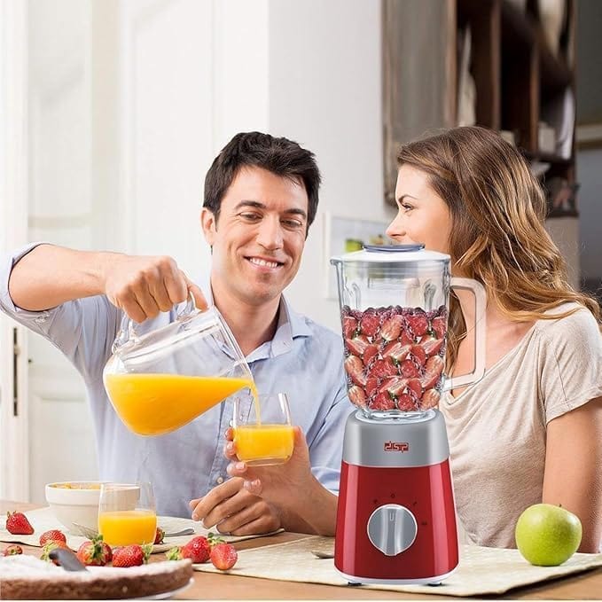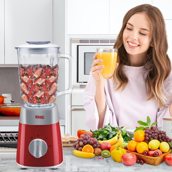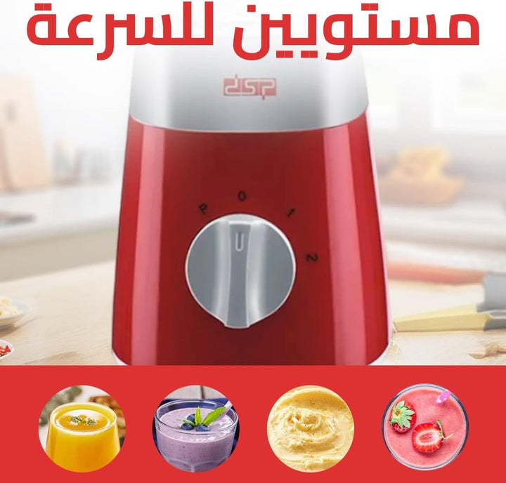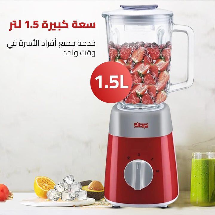 خلاط كهربائي زجاجي 1.5 لتر متعدد الاستخدامات – تصميم أحمر عصري – موديل KJ2038