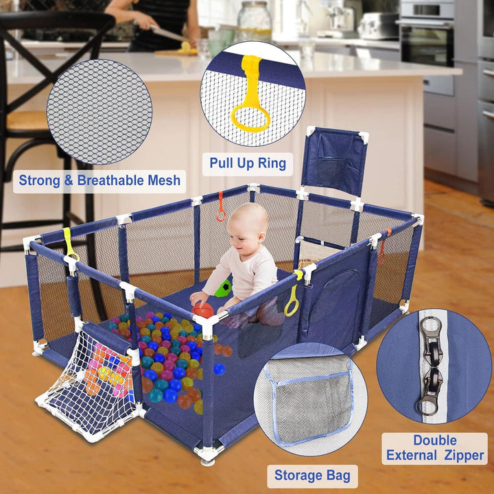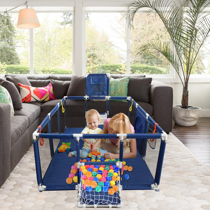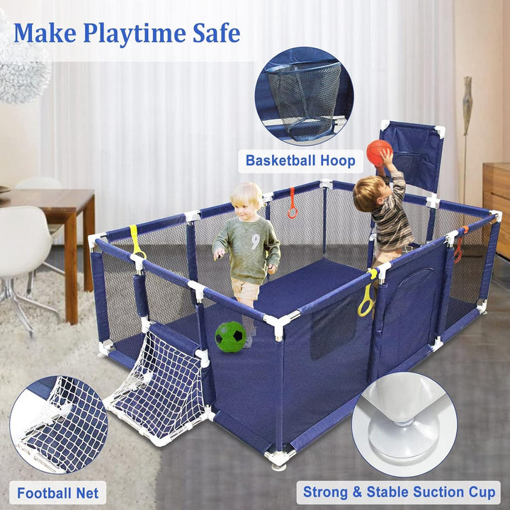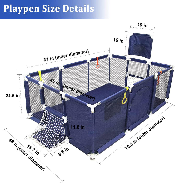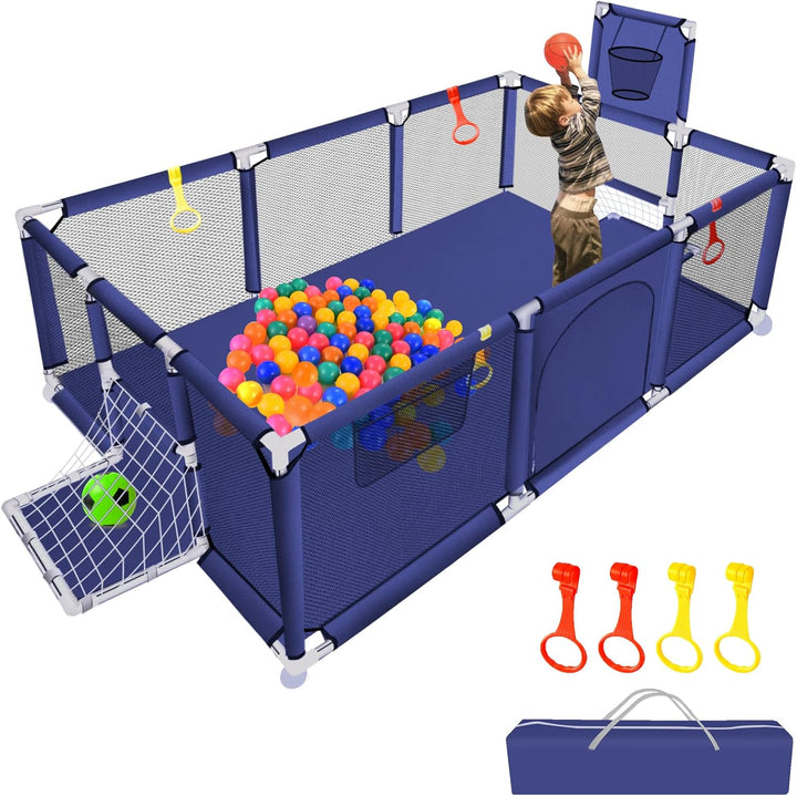 تشمل: حلقة كرة سلة، شبكتي كرة قدم، 3 حلقات رمي، و50 كرة ملونة.