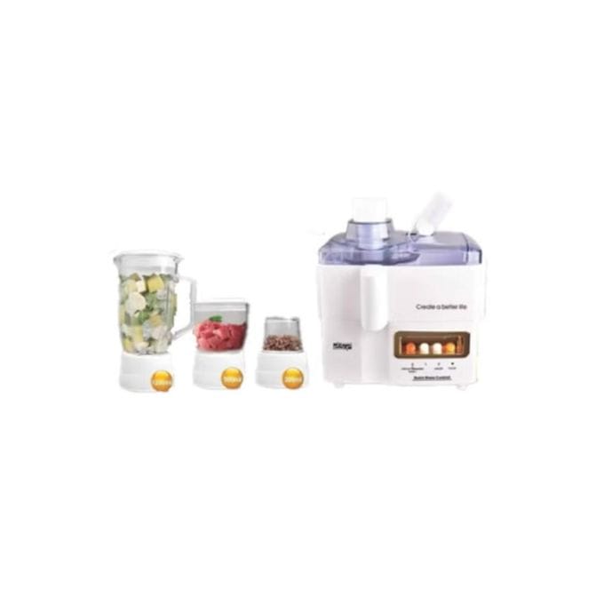 4 وظائف متكاملة في جهاز واحد: خلط، فرم، طحن، وعصر